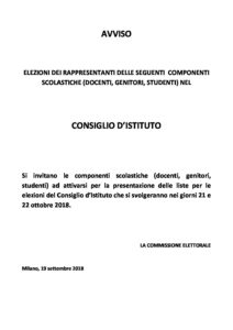 AVVISO presentazione liste elezioni Consiglio d’Istituto