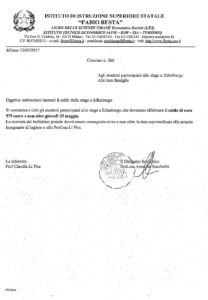 Circ.266 – Indicazioni inerenti il saldo dello stage a Edimburgo