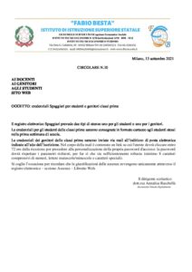 FIRMATO_circolare n.10 credenziali Spaggiari per studenti e genitori classi prime