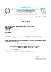FIRMATO_circolare n.104 a scuola di prevenzione – incontro CONSAPEVOLEZZA NELLA GUIDA