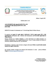 circolare n.104 Incontro di orientamento con l’Università degli Studi di Milano-Bicocca