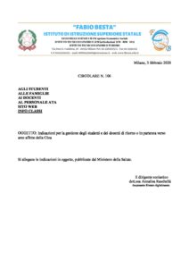 FIRMATO_circolare n.106 indicazioni per la gestione degli studenti e dei docenti di ritorno o in partenza verso aree affette della Cina
