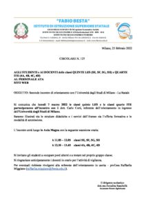 FIRMATO_circolare n.127 Secondo incontro di orientamento con l’Università degli Studi di Milano – La Statale