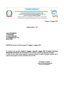 FIRMATO_circolare n.129 lezioni in DAD nei giorni 31 maggio e 1 giugno 2021