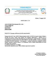 FIRMATO_circolare n. 156 consegna certificazioni attività extrascolastiche