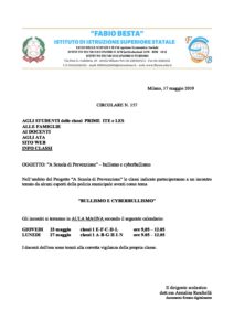 FIRMATO_circolare n.157 “A Scuola di Prevenzione” – bullismo e cyberbullismo
