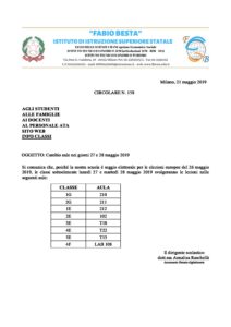 FIRMATO_circolare n. 158 orario scolastico nei giorni 27 e 28 maggio 2019