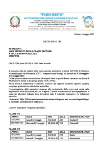 FIRMATO_circolare n.185 prove INVALSI CBT classi seconde