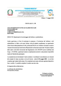 FIRMATO_circolare n. 188 questionario di monitoraggio del bullismo e cyberbullismo