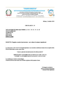 FIRMATO_circolare n.19 progetto a scuola di prevenzione – uso e abuso di sostanze stupefacenti