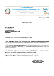 FIRMATO_circolare n. 201 saluti e orario attività didattica 8 giugno 2022