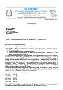 circolare n.5 orario e organizzazione prime due settimane