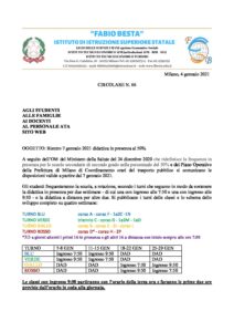 circolare n.66 rientro 7 gennaio 2021 didattica in presenza al 50%