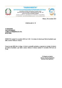 FIRMATO_circolare n. 79 martedì 21 novembre 2023 ore 11.00 Un minuto di silenzio per Giulia Cecchettin e per tutte le donne vittime di violenza