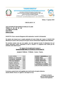 FIRMATO_circolare n.91 gioco concorso Kangourou della matematica incontri di allenamento