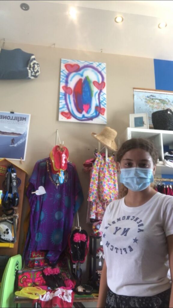 Lavoro in un negozio di abbigliamento e scuola di surf. Mi occupo di emettere fatture, aiutare in cassa, sistemo la merce negli scaffali e l’occorrente per le lezioni di surf. In spiaggia durante le lezioni scatto foto che poi edito e posto sull’account Instagram della scuola. Imparando, mi diverto molto!
