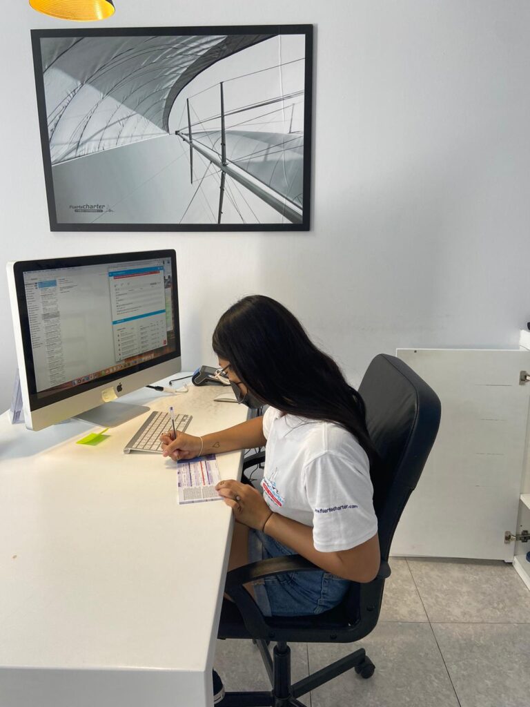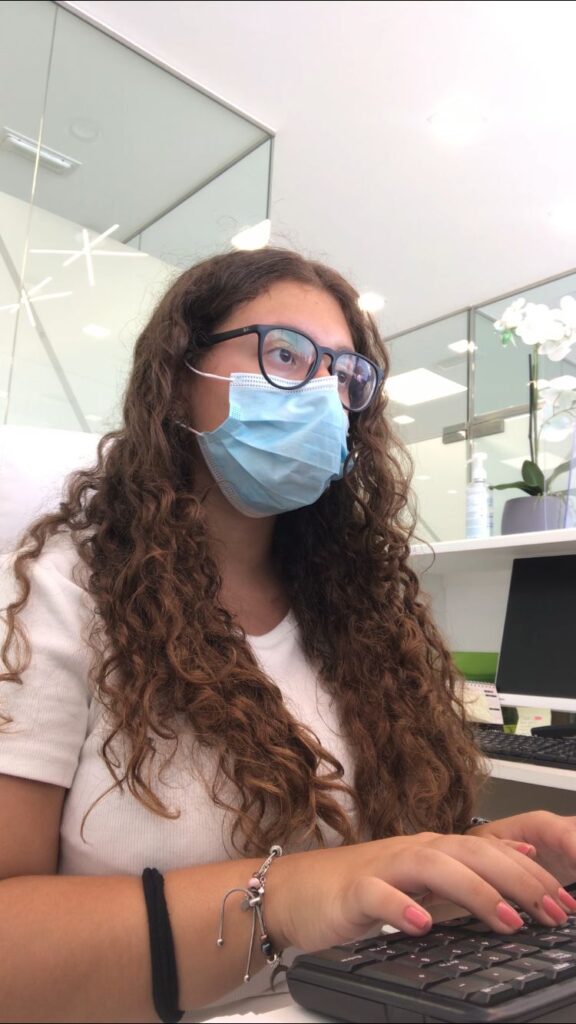 Questo è il back office dove lavoro e questa sono io che registro dei documenti dei clienti che devono arrivare il giorno dopo. La mia esperienza sta andando molto bene, lo staff è molto gentile e sono tutte molto disponibili, non ci sono problemi di comunicazione perché la maggior parte sa parlare l’italiano; le mie colleghe stagiste sono molto simpatiche e pazienti con me, sono sempre pronte a ripetermi come fare una cosa se mi dimentico dei passaggi. Sono contenta di lavorare al Bristol Sunset Beach e spero di passare le prossime settimane con questo andamento.
