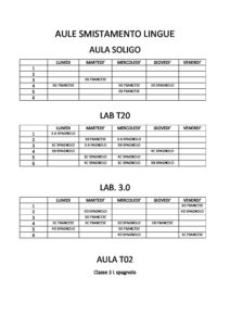 ORARIO AULE SMISTAMENTO LINGUE dal 1 ottobre 2018