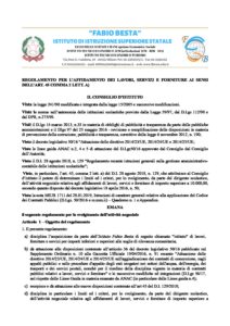 REGOLAMENTO PER L’AFFIDAMENTO DEI LAVORI, SERVIZI E FORNITURE
