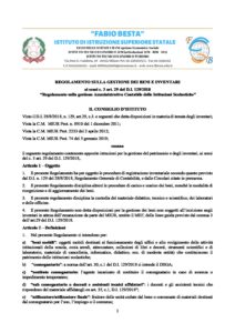 REGOLAMENTO SULLA GESTIONE DEI BENI E INVENTARI