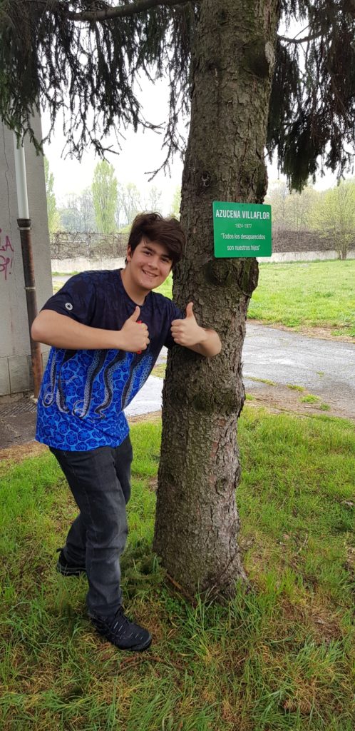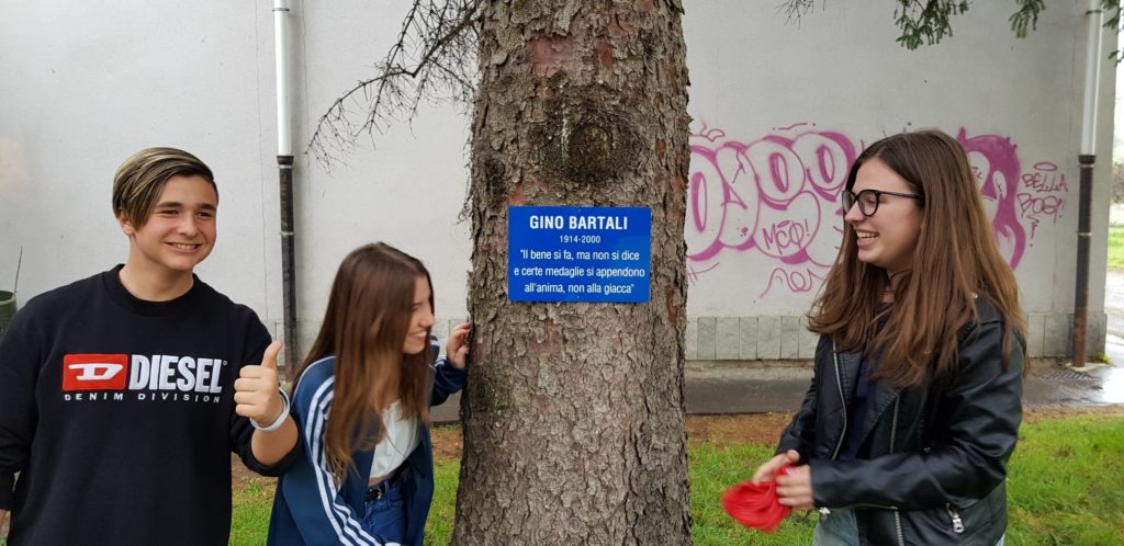 - Gli studenti di 1° D hanno scelto gli alberi del giardino della scuola da dedicare ad ognuno dei Giusti che hanno adottato e hanno fatto realizzare 3 targhette da affiggere agli alberi dopo aver trovato autonomamente (con una colletta, con un mercato ecc..) i finanziamenti necessari per pagarle.